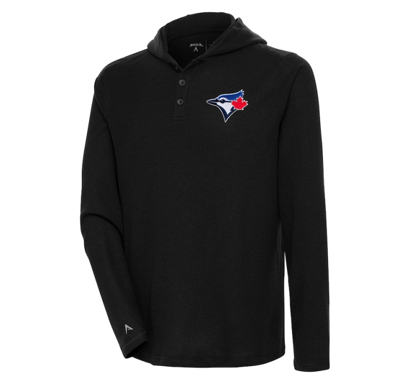 • Adult Men's Toronto Blue Jays Antigua Strong Hold Long Sleeve Henley baseball Hoodie baseball T-shirt - Black