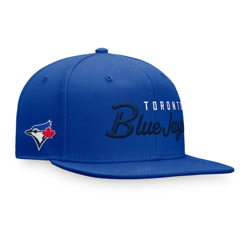 Pay a nod to your favorites before stepping out by grabbing this Toronto Blue Jays Script hat from us. It features an embroidered wordmark in a tasteful script font on the front panels that and additional logo on the right side crown for a double dose of team spirit. The snap closure makes finding the perfect fit simple, and the flat bill offers a street-ready look that will have you ready for the next opening pitch.