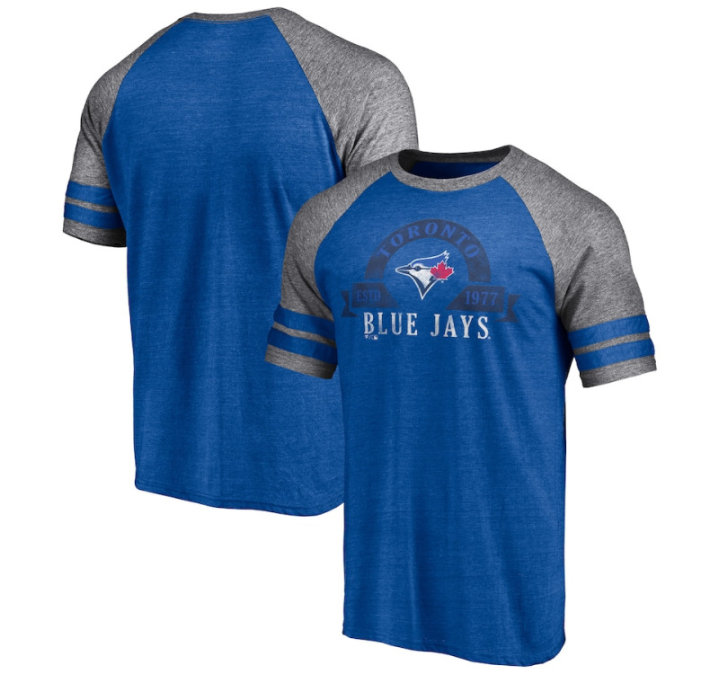 Your unwavering Toronto Blue Jays loyalty will never be questioned when you are sporting this Utility Two-Stripe T-shirt from us. It features raglan sleeves and tri-blend fabric, meaning you'll be able to stay comfortable while having plenty of arm room to cheer on your favorite players. Distressed team graphics give this Toronto Blue Jays top a vintage look that'll you'll want to have on game day.