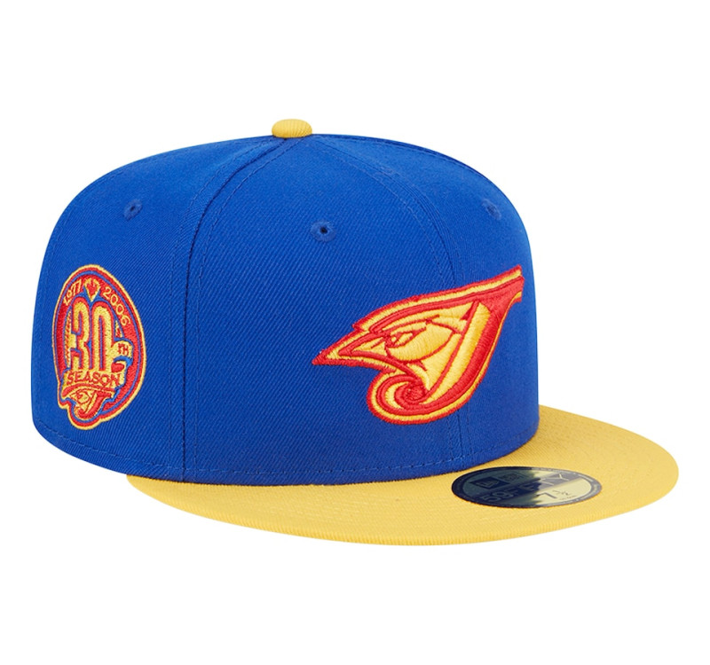 Give your Toronto Blue Jays headwear a whole new look with this Empire 59FIFTY hat from New Era. Its vibrant design features a raised Toronto Blue Jays logo across the front and vintage graphics embroidered on the side. A fitted construction ensures this colorful cap fits you perfectly.