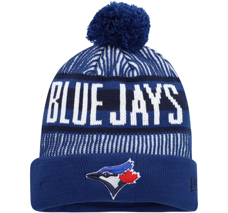 Every Toronto Blue Jays fan needs gear for all types of weather. Make sure you're prepared for the cooler months with this Striped cuffed knit hat from New Era. Featuring a pom on top for an added touch of style, this accessory comes complete with undeniable Toronto Blue Jays graphics that will instantly highlight your unrivaled passion. Pair this cap with your go-to sweater or hoodie for a stylish winter look this season.