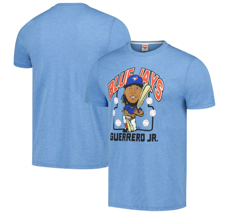 Rep your favorite Toronto Blue Jays player in a fun way with this Vladimir Guerrero Jr. Caricature T-shirt from Homage. Its printed graphics feature a unique take on the Toronto Blue Jays star. Tri-blend material also gives this Vladimir Guerrero Jr. tee a really soft feel for lasting comfort.