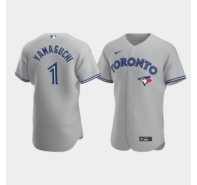 Men's Toronto Blue Jays #1 Shun Yamaguchi Gray Authentic 2020 Road Jersey Men's Toronto Blue Jays #1 Shun Yamaguchi Gray Authentic 2020 Road Jersey. Highly breathable fabric helps keep sweat off your skin, so you stay cool whether you're cheering in the stands or playing on the pitch.Your die-hard Toronto Blue Jays dedication cannot be beat! Let everyone know your pride is Matt Chapman by sporting your own customized look for game day with this Toronto Blue Jays Replica Jersey.