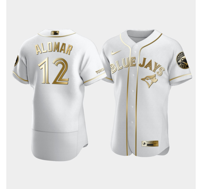 Men's Toronto Blue Jays #12 Roberto Alomar White Golden Edition Authentic Jersey Men's Toronto Blue Jays #12 Roberto Alomar White Golden Edition Authentic Jersey. Highly breathable fabric helps keep sweat off your skin, so you stay cool whether you're cheering in the stands or playing on the pitch.Your die-hard Toronto Blue Jays dedication cannot be beat! Let everyone know your pride is Matt Chapman by sporting your own customized look for game day with this Toronto Blue Jays Replica Jersey.