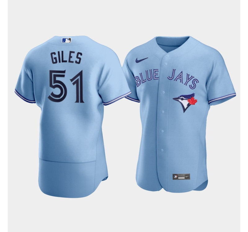 Men's Toronto Blue Jays #51 Ken Giles Light Blue Authentic 2020 Alternate Jersey Men's Toronto Blue Jays #51 Ken Giles Light Blue Authentic 2020 Alternate Jersey. Highly breathable fabric helps keep sweat off your skin, so you stay cool whether you're cheering in the stands or playing on the pitch.Your die-hard Toronto Blue Jays dedication cannot be beat! Let everyone know your pride is Matt Chapman by sporting your own customized look for game day with this Toronto Blue Jays Replica Jersey.