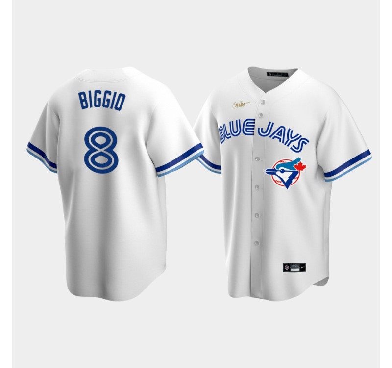 Men's Toronto Blue Jays #8 Cavan Biggio Cooperstown Collection Home White Jersey Men's Toronto Blue Jays #8 Cavan Biggio Cooperstown Collection Home White Jersey. Highly breathable fabric helps keep sweat off your skin, so you stay cool whether you're cheering in the stands or playing on the pitch.Your die-hard Toronto Blue Jays dedication cannot be beat! Let everyone know your pride is Matt Chapman by sporting your own customized look for game day with this Toronto Blue Jays Replica Jersey.