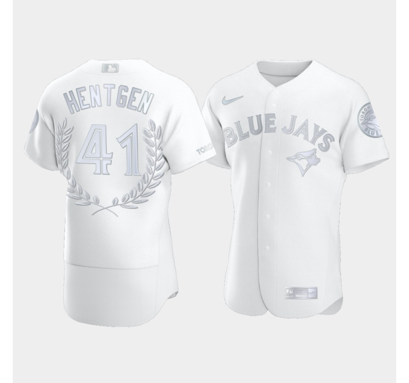 Men's Toronto Blue Jays Pat Hentgen #41 White Awards Collection AL Cy Young Jersey Men's Toronto Blue Jays Pat Hentgen #41 White Awards Collection AL Cy Young Jersey. Highly breathable fabric helps keep sweat off your skin, so you stay cool whether you're cheering in the stands or playing on the pitch.Your die-hard Toronto Blue Jays dedication cannot be beat! Let everyone know your pride is Matt Chapman by sporting your own customized look for game day with this Toronto Blue Jays Replica Jersey.