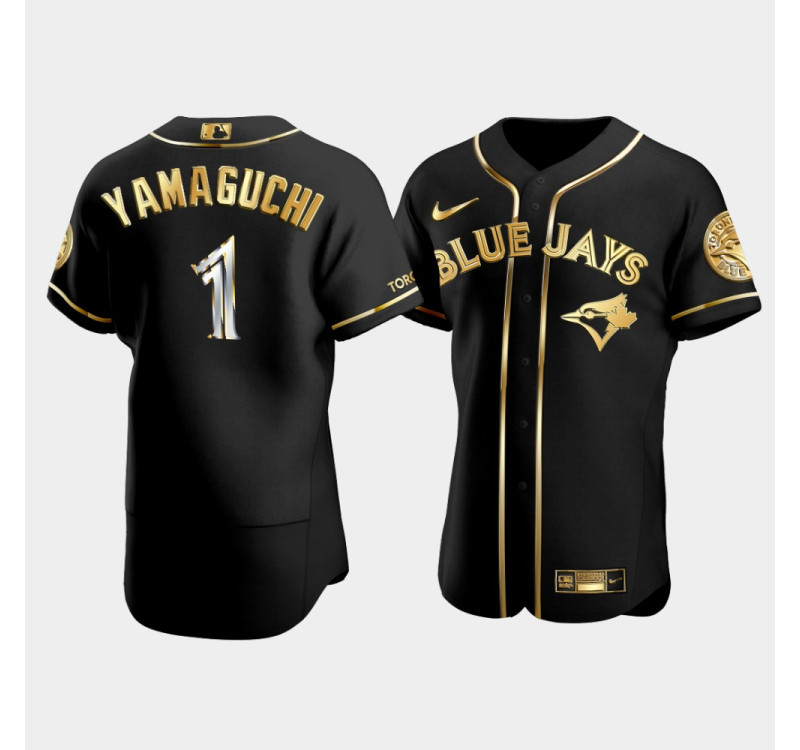 Men's Toronto Blue Jays Shun Yamaguchi #1 Black Gold Edition Authentic Jersey Men's Toronto Blue Jays Shun Yamaguchi #1 Black Gold Edition Authentic Jersey. Highly breathable fabric helps keep sweat off your skin, so you stay cool whether you're cheering in the stands or playing on the pitch.Your die-hard Toronto Blue Jays dedication cannot be beat! Let everyone know your pride is Matt Chapman by sporting your own customized look for game day with this Toronto Blue Jays Replica Jersey.