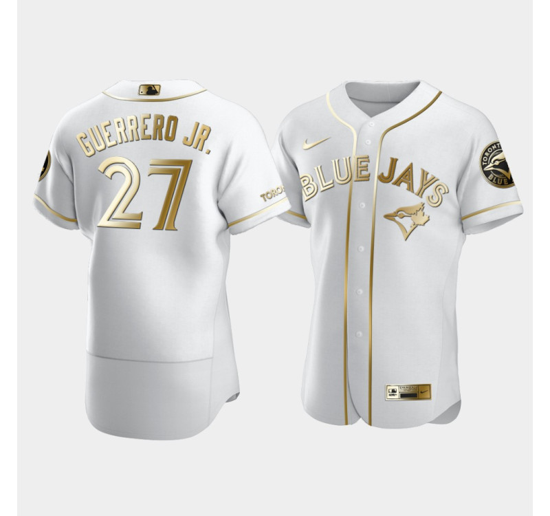 Men's Toronto Blue Jays #27 Vladimir Guerrero Jr. White Golden Edition Authentic Jersey