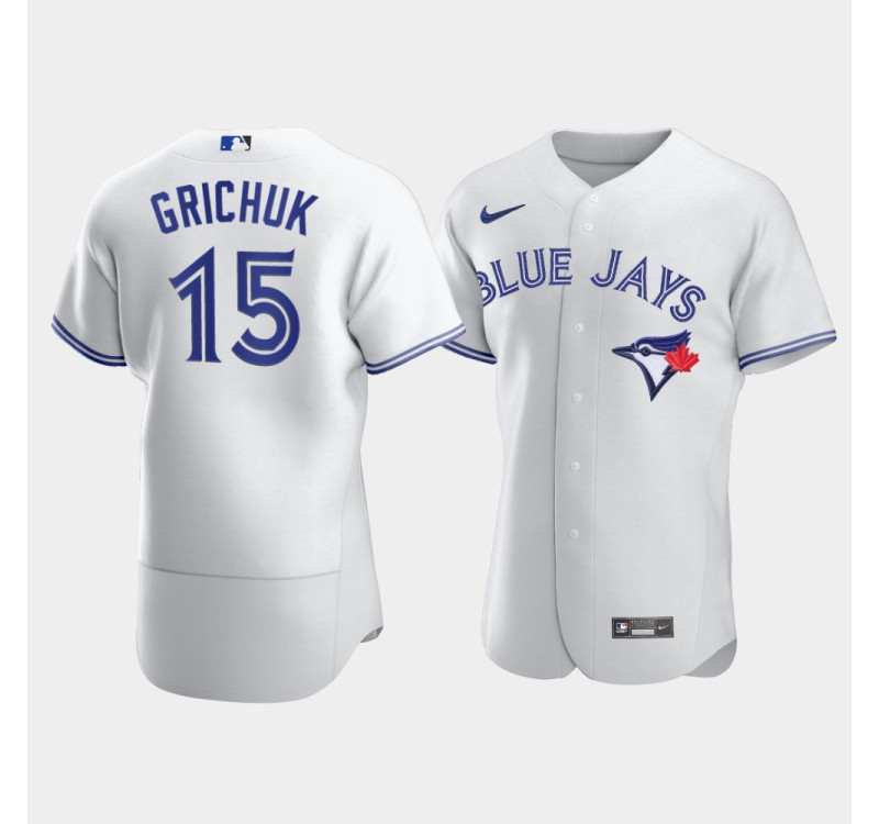 Men's Toronto Blue Jays #15 Randal Grichuk White Authentic Nike Jersey Men's Toronto Blue Jays #15 Randal Grichuk White Authentic Nike Jersey. Highly breathable fabric helps keep sweat off your skin, so you stay cool whether you're cheering in the stands or playing on the pitch.Your die-hard Toronto Blue Jays dedication cannot be beat! Let everyone know your pride is Matt Chapman by sporting your own customized look for game day with this Toronto Blue Jays Replica Jersey.