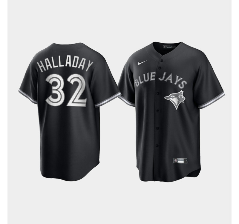 Toronto Blue Jays Roy Halladay Black White 2021 All Black Fashion Replica Jersey