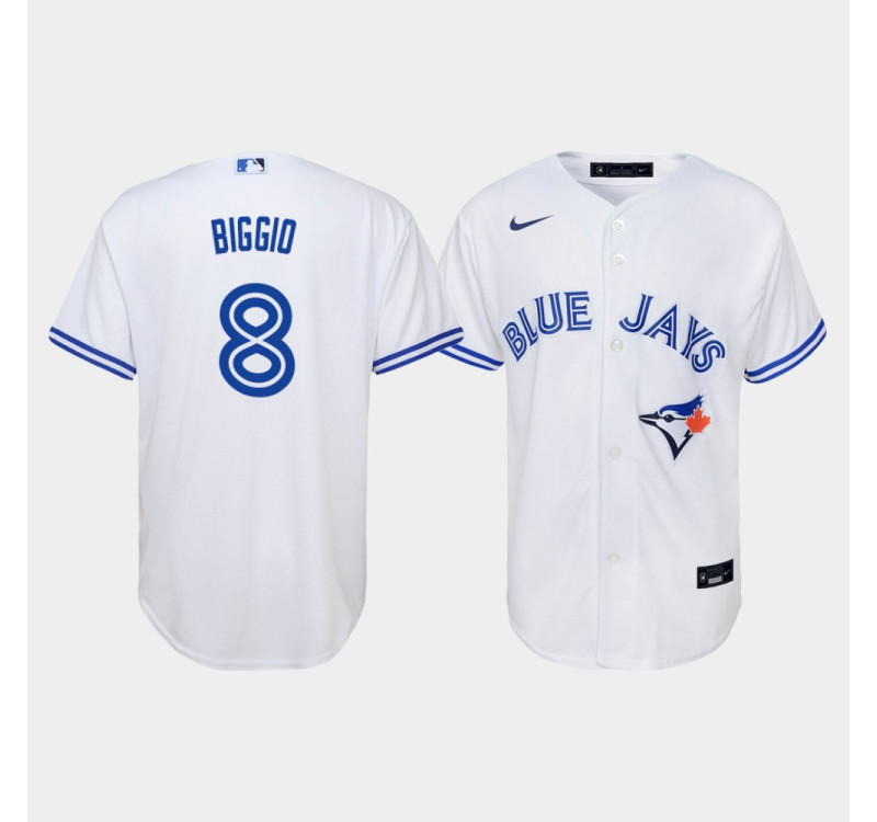 Youth Toronto Blue Jays Cavan Biggio #8 White Replica Nike Home Jersey Youth Toronto Blue Jays Cavan Biggio #8 White Replica Nike Home Jersey. Highly breathable fabric helps keep sweat off your skin, so you stay cool whether you're cheering in the stands or playing on the pitch.Your die-hard Toronto Blue Jays dedication cannot be beat! Let everyone know your pride is Matt Chapman by sporting your own customized look for game day with this Toronto Blue Jays Replica Jersey.
